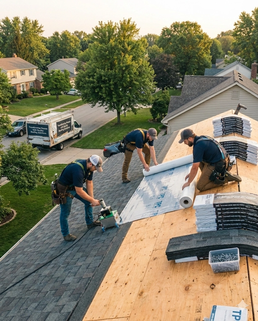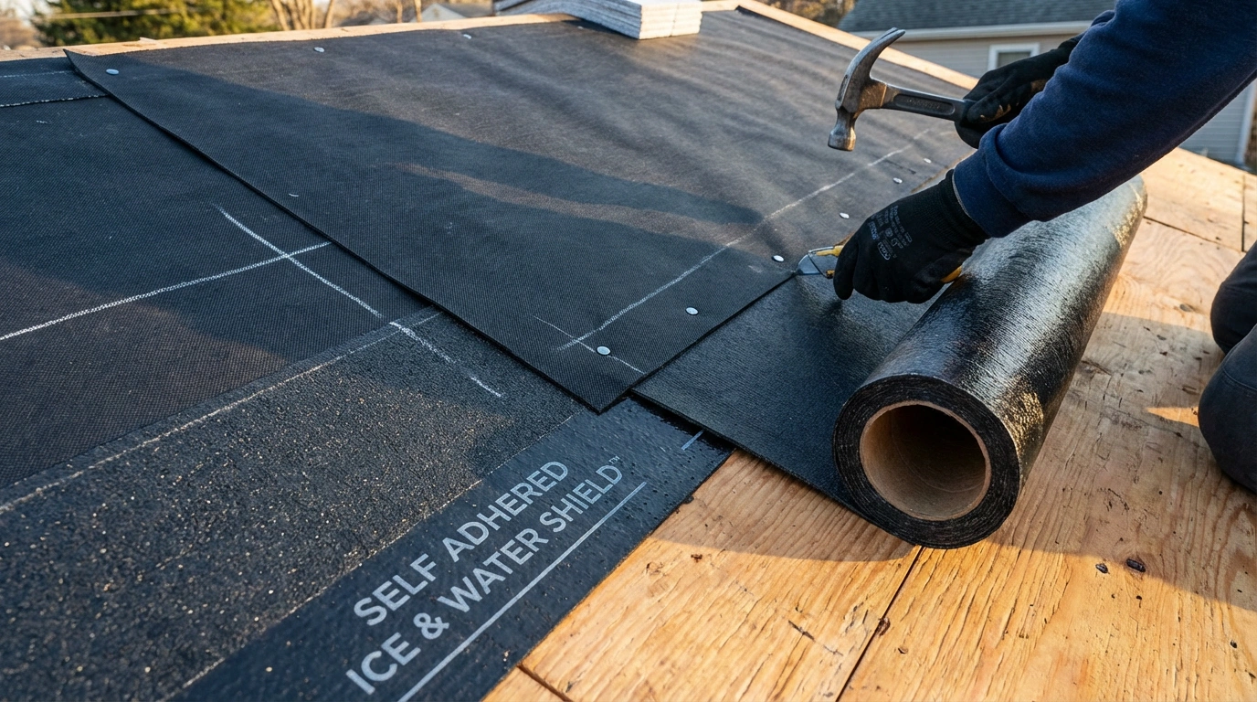 We install premium synthetic underlayment, ice & water shield, and new flashing for maximum protection.